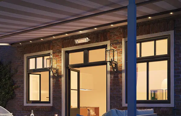 Im Vergleich zu elektrischen Quarzstrahlern wird bei der weinor Infrarot-Wärmetechnik direkt die Haus erwärmt, nicht die dazwischenliegende Luft.