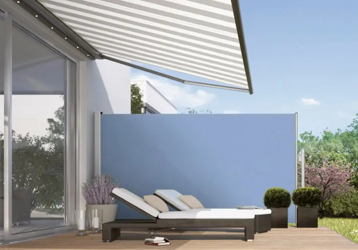 Sonne- und Wetterschutz von oben ist effektiv, aber nicht immer ausreichend. Gerade die tiefstehende Sonne abends oder im Herbst und Winter kann unangenehme Blendung verursachen. Und manchmal möchte man auch einfach nur für sich sein, bewahrt vor fremden Blicken.