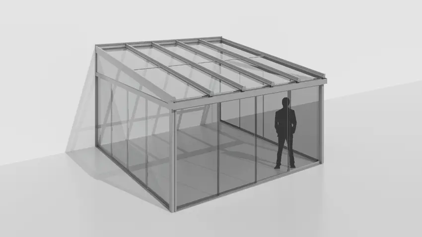 Für die sogenannte "Ausfachung" stehen verschiedene Möglichkeiten zur Verfügung: Festverglasungen oder unterschiedliche Öffnungselemente. In der Regel ist auch eine nachträgliche Erweiterung möglich.